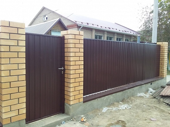 ЗАБОР ИЗ ПРОФНАСТИЛА С КИРПИЧНЫМИ СТОЛБАМИ 15 СОТОК